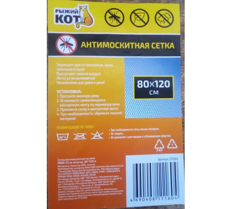 Отзывы об антимоскитной сетке на окно Рыжий кот MWN-03 на липучке, 80х120см 311264