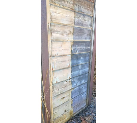 Под мои задачи (убрать потемнение с бруса/имитации бруса, покрытого когда-то антисептиком) справляется сильно лучше Неомида. Действует практически моментально, но не надо экономить. Наносил синтетической кистью, втирая по нескольку раз, обильно смоченной.