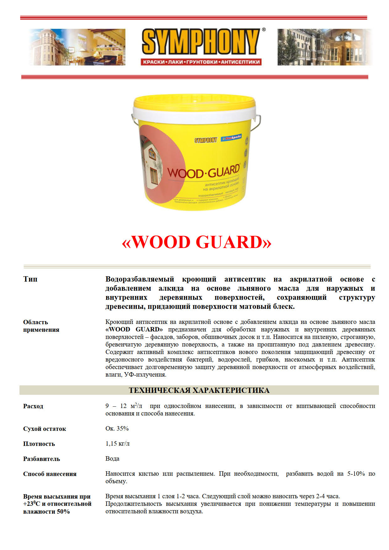 Кроющий антисептик на акрилатной основе с добавлением алкида на основе льняного масла Вудгарт предназначен для обработки наружных и внутренних деревянных поверхностей – фасадов, заборов, обшивочных досок и т.п. Наносится на пиленую, строганную, бревенчатую деревянную поверхность, а также на пропитанную под давлением древесину. Содержит активный комплекс антисептиков нового поколения защищающий древесину от вредоносного воздействия бактерий, водорослей, грибков, насекомых и т.п. Антисептик обеспечивает долговременную защиту деревянной поверхности от атмосферных воздействий, влаги, УФ-излучения.