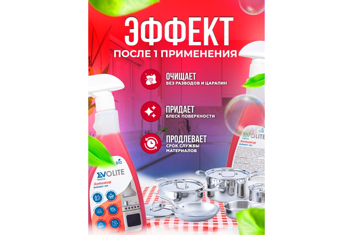 Профессиональное средство для очистки оборудования, предназначенного для термической обработки: плит, духовых и жарочных шкафов, вытяжек, пароуловителей, коптильных камер и пароконвектоматов, печей, котлов для варки, фритюрниц, грилей, микроволновых печей, тары, посуды. Для мгновенного удаления стойких въевшихся пригоревших жировых загрязнений, копоти и нагара. Очищает без разводов и царапин, придает поверхностям сияющий блеск и продлевает срок службы материалов. Практично и экономично в использовании. БЕЗ РЕЗКОГО ЗАПАХА!