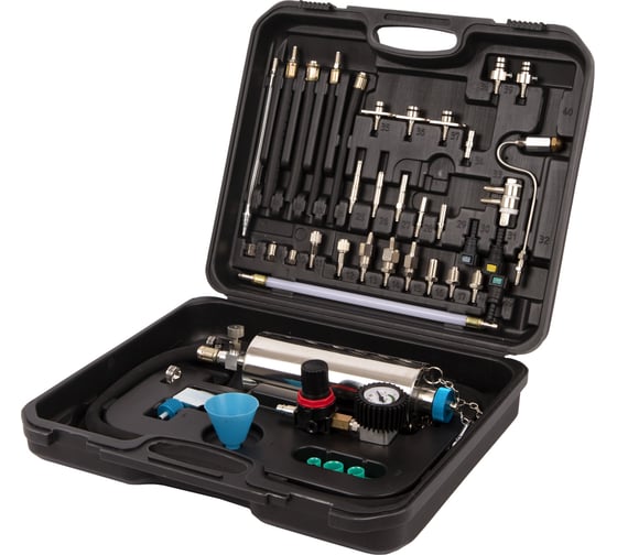 Аппарат для очистки топливных систем WIEDERKRAFT WDK-214310F применяется для очистки топливных систем, дроссельной заслонки и т.д. Комплект является универсальным и подходит для бензиновых и дизельных двигателей любого производителя. Инструменты позволяют не тратить время на разборку и снятие форсунок. Приспособление подключается и работает с помощью компрессора.