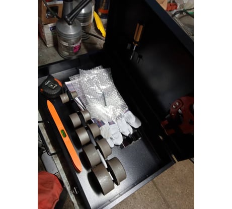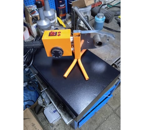 Кейс сделан топорно. Но, свои функции исполняет. Рулетка (3 метра; тонкая: помялась и стёрлась за два дня работы). На выброс. Уровень на вид не вызывает доверия. Не пользовался. Подставка для паяльника сделана также как и кейс. К куску квадратного профиля приварены четыре загнутых прутка. И покрашено оранжевой краской. Вот и все. Когда вставляешь паяльник в эту подставку - болтается как карандаш в стакане. Это пол-беды, можно доколхозить. Другая половина, это когда вытаскиваешь обе свариваемые части из насадок, никогда не знаешь которая из них застрянет в насадке. Собственно, тратятся те самые секунды, чтобы успеть перехватиться, вытащить из насадки, придерживая паяльник и попытаться впаять правильно. По-хорошему, нужна струбцина (для стола), а так два кирпича в помощь. А если паять по месту, это недоразумение не должно выпадать, чтобы не бросать паяльник как попало. Подставка - самый главный недостаток!
