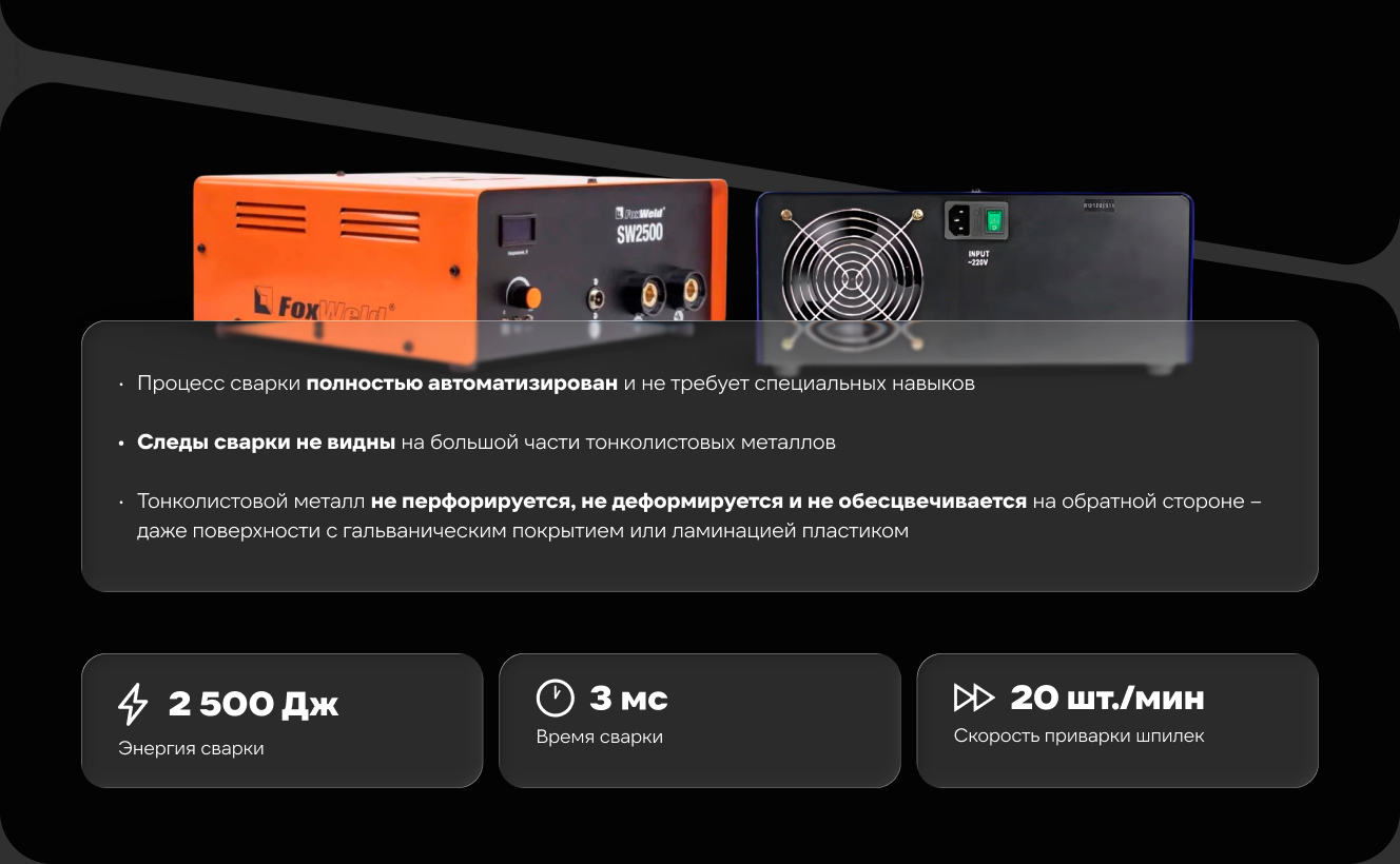 Аппарат конденсаторной приварки шпилек Foxweld SW2500, М3-М8, 3094
