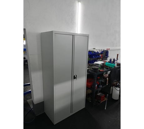 Хороший шкаф. Как и все офисные шкафы сделан из вполне тонкого металла, но этого хватает чтоб расположить на полках сварочный инвертор, электроды, пром пылесос и тому подобное. Полки держатся не прогибаются. в комплекте есть все для его сборки. Сам шкаф жидковат виду его назначения «офисный» поэтому его необходимо ставить только на ровный пол, иначе перекосит дверь и она не будет закрываться. Я покупал для гаража, поэтому сварил ему тележку на регулируемых колесиках.