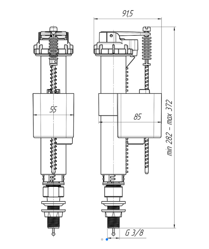 Поплавок, благодаря которому контролируется набор воды в бачок унитаза, оснащён бесступенчатой регулировкой положения, что позволяет настраивать объём воды в бачке. При наполнении бачка поплавок поднимается до выбранного уровня, после которого подача воды останавливается. Сам поплавок перемещается внутри пластикового стакана – это предохраняет его от заклинивания о стенку бачка.