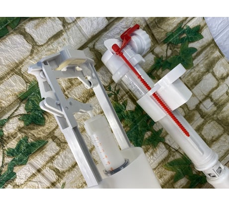 Инструкция выполнена на одном листе, состоит из чертежей, схематичных рисунков и таблиц. Неподготовленному человеку разобраться не просто. К наливному клапану вопросов нет, а вот к выпускному их много. Система старт/стоп даже на максимальной настройке сливает небольшое количество воды (по моим меркам) и для большего слива приходится удерживать кнопку. Конструкция клапана довольно жестоко привязана к высоте бачка, к тому же кнопка не имеет регулировки вылета штока, что лишает возможности более точной и удобной подстройки. Высота трубки перелива опять же привязана к высоте клапана и при желании увеличить высоту набора воды даже на один, полтора сантиметра - такой возможности нет, иначе система рычагов подъема клапана не будет работать корректно. А больше всего мне не понравилось, что для подъёма клапана приходится давить на кнопку с ощутимым усилием. Все описанные претензии указаны исходя из опыта использования и сравнения с более удачными в этих моментах изделиями. А вложенный ключик для заворачивания кнопки — это что, шутка такая? Он вообще не работает. Если бы пришлось писать отзыв именно о выпускном клапане, поставил бы только тройку.