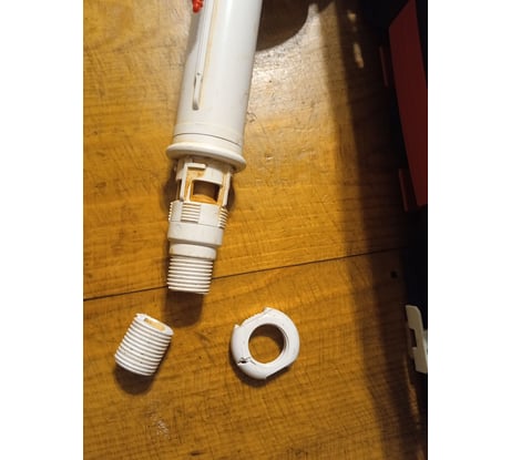 В целом надёжный механизм, фиксация по высоте очень надёжная - давлением воды не срывает. Старый заливной клапан отработал 10 лет. Надеюсь этот прослужит не меньше. Фитингу на фото тоже 10 лет - весь потемнел от времени).