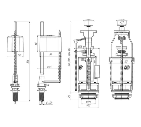 Менял старую арматуру в бачке. Подошло без проблем, кнопка работает в двух режимах. Сборка качественная.