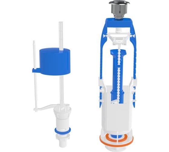 Сливная арматура для унитаза AV Engineering (AVE129688E) предназначена для комплектации и ремонта бачков с нижним подводом воды. Узел включает двухрежимный смыв с кнопочным управлением: конструкция позволяет выбирать полный или частичный слив в зависимости от настроек механизма. Клапан подачи воды имеет нижнее подключение с резьбой 1/2", выполненной из пластика. Высота выпускного механизма и положение поплавка могут регулироваться, что даёт возможность подстроить уровень воды в бачке под конкретную форму изделия и объём.