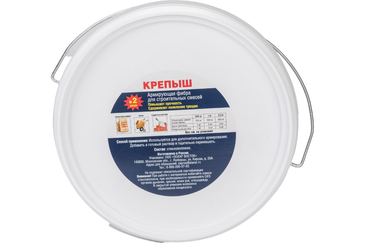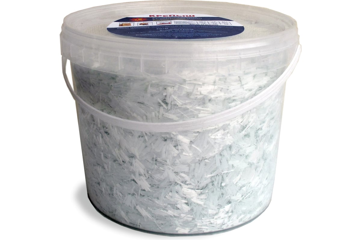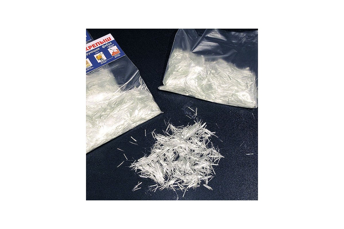 Армирующая фибра Крепыш 2,5 кг Arm-2,5 для строительных смесей и растворов - щёлочестойкая фибра из штапельного (рубленного) стекловолокна. Применяется в качестве укрепляющей армирующей добавки к различным строительным смесям (штукатурки, цемент, бетон), кладочным растворам, полусухим и мокрым стяжкам, стяжкам при устройстве тёплых полов и пр., для повышения их прочности, увеличения срока службы и защиты от трещин.