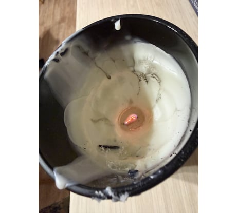 Свеча не оправдала ожидания, перестала гореть из за того что прогорела посредине и теперь она перестает гореть так как ее заливает воском .
