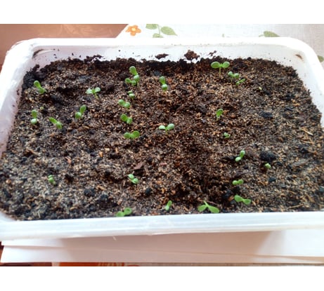 Всхожесть хорошая. Продолжают всходить. Фото через 8 дней после посева. Что вырастет посмотрим в конце лета..