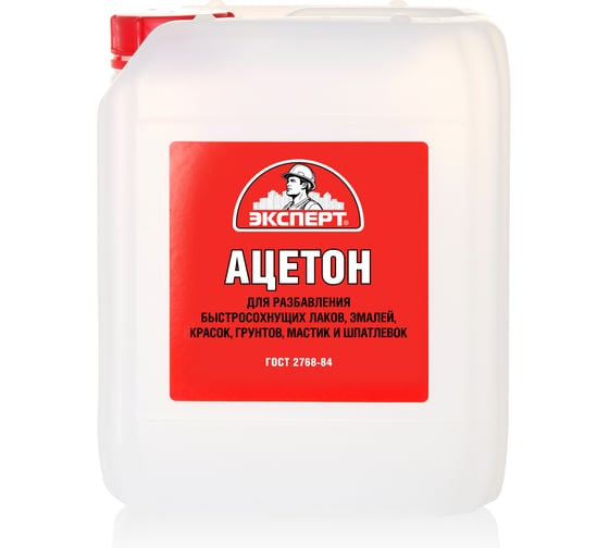 Ацетон ЭКСПЕРТ 5 л 26884 предназначен для разбавления природных и эпоксидных смол, полистиролов, очистки инструмента, для обезжиривания поверхности и растворения масел. Добавляется в лакокрасочные продукты для получения необходимой рабочей вязкости. Соответствует ГОСТу 2768-84.