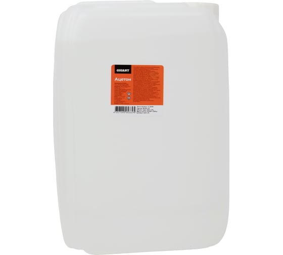 Ацетон Gigant канистра 20л GAC-20 позволяет растворять нитролаки, нитрокраски и органические вещества, из-за чего с его помощью можно обезжирить как керамические поверхности, так и любые другие (металл, древесины, бетон). Большое количество вещества может разрушить волокна целлюлозы и резины, а также помочь с устранением солевого налета.