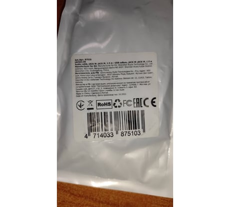 Тип разъема:Jack 3.5 mm вилка/Jack 3.5 mm вилка