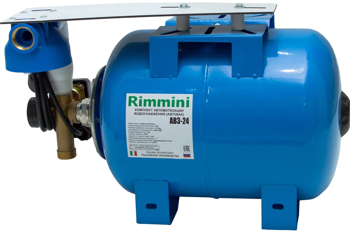 Автобак АВ3-24 реле давления, горизонтальное расположение Rimmini Rim-AB3-24H - комплект автоматизации системы водоснабжения, готовое решение для создания автоматически работающей системы холодного водоснабжения. Достаточно подключить автобак к насосу, точкам водоразбора и электрической сети и система готова к работе.