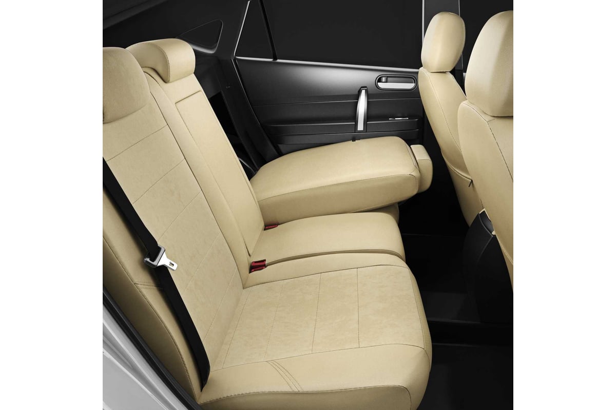 Авточехлы для Toyota Matrix 1 с 2001-2009г. хэтчбек Комплектация: Задние спинка и сиденье 40 на 60, 4 подголовника Цвет: Середина: бежевая алькантара. Боковины: бежевая экокожа. Спинка: бежевая экокожа. TA27-0401-EC41