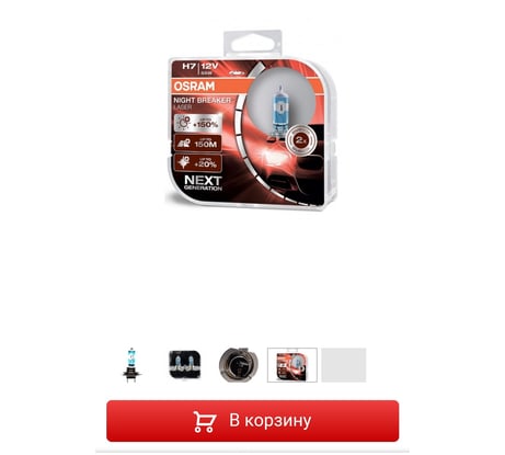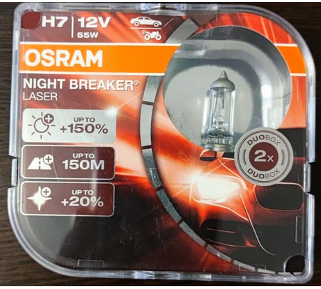 Отзывы об автолампе Osram H7 55 PX26d+150 NIGHT LASER 3750K, 2шт 12V ,1,10 64210NL-HCB