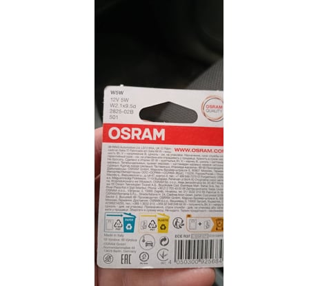 Отзывы об автолампе Osram W5W W2.1 9.5d, 2шт 12V ,1,10 2825-2BL