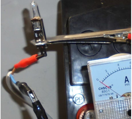 Галогенные лампы Osram 64150 H1 12V 55W. Светоотдача ламп стандартная бело-желтая со спектром в районе 3200 K. Светят ярко, надежные и долговечные. При собственных измерениях при подаче рабочего напряжения 13,17V (АКБ + ЗУ, стандартная методика требует подачи на 12V лампу 13,2V) каждая из двух ламп продемонстрировала ток потребления 4,5A - 4,6A. Это соответствует мощности лампы 59,3W - 60,6W. Отлично работают в фарах дальнего света.