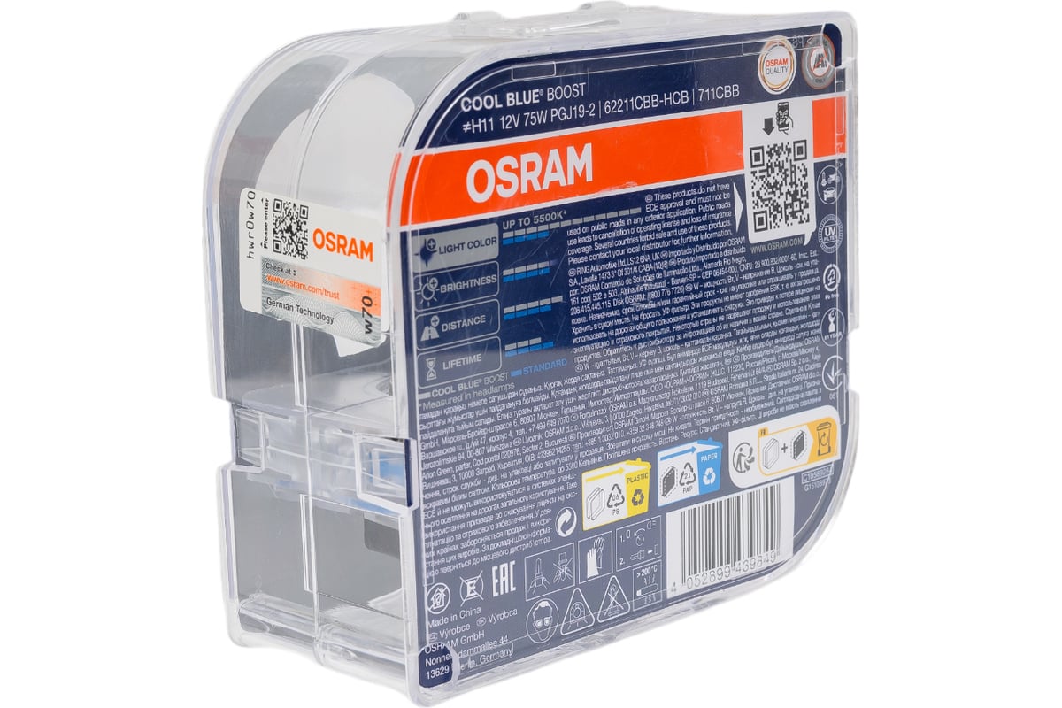 Автолампа OSRAM H11 80 PGJ19-2 +50% BLUE BOOST 5000K, 2шт 12V, 1, 10 62211CBB-HCB изготовлена в соответствии с современными технологиями и отличается эффективной светоотдачей. Лампочка устанавливается в автомобиль в качестве осветительного прибора и значительно повышает уровень безопасности во время передвижения в темное время суток.