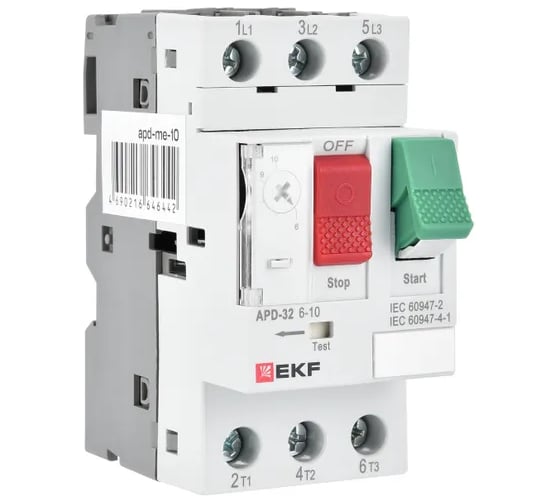 Автоматический выключатель пуска двигателя серии АПД-32 EKF PROxima с термомагнитным расцепителем специально предназначен для коммутаций цепей переменного тока напряжением до 690 В частотой 50/60 Гц, а также для управления и защиты трехфазных асинхронных двигателей от перегрузки, обрыва фазы, короткого замыкания.