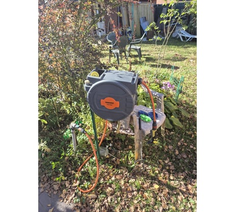 Удобный механизм, внешне всё надежно и добротно. Шланги больше не надо сматывать/разматывать.