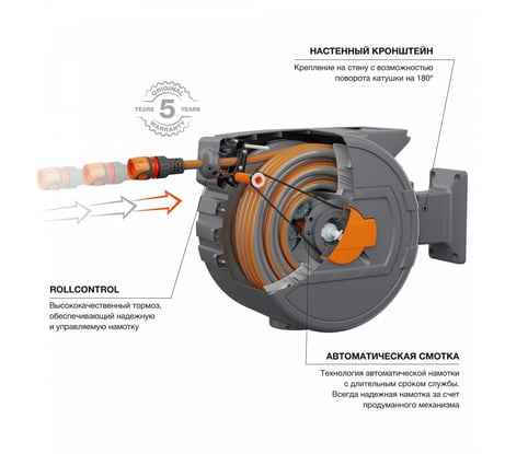 Удобный механизм, внешне всё надежно и добротно. Шланги больше не надо сматывать/разматывать.