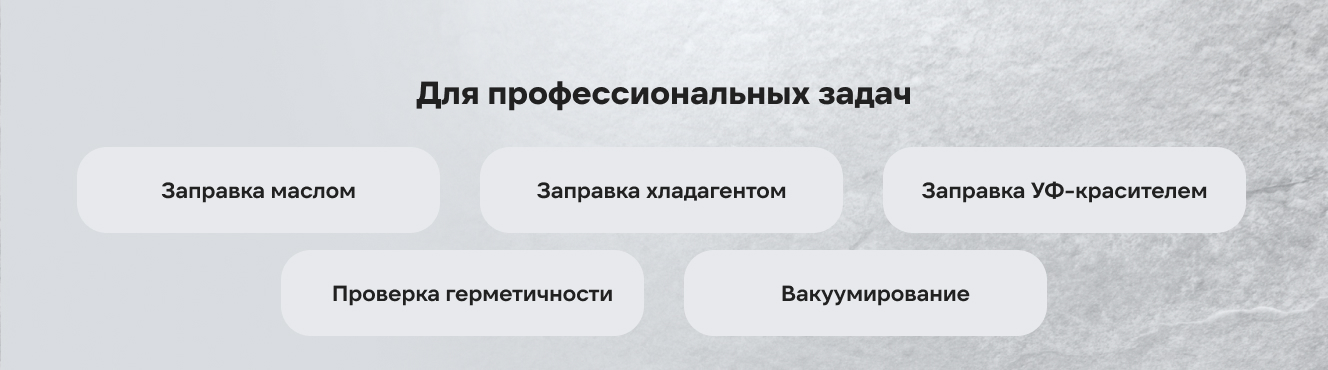 - вакуумирование, создание разряжения в системе кондиционирования воздуха автомобиля;