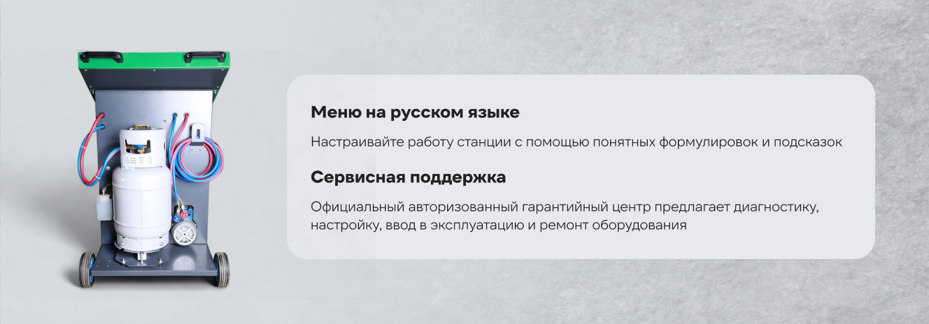 - Полноценный автоматический режим заправки автомобиля (извлечение и диагностика системы, заправка масла, заправка уф красителя и заправка хладагента)