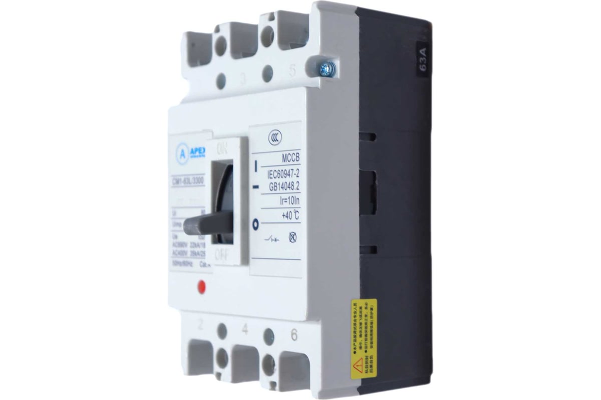 Автоматические выключатели серии ВА-89M APEX BASE предназначены для проведения тока в нормальном режиме и отключения тока при коротких замыканиях, перегрузке, недопустимых снижениях напряжения, а также для оперативных включений и отключений участков электрических цепей и рассчитаны для эксплуатации в электроустановках с номинальным рабочим напряжением до 400 В и на номинальные токи от 12,5 до 1600 А. Выключатель ВА-89 выполнен в виде моноблока и состоит из основания и крышки с фальшпанелью, в которой имеется окно для рукоятки управления и толкатель кнопки «Тест» - проверки механизма отключения выключателя. Основание выполнено из термостойкой пластмассы, не поддерживающей горение и являющейся несущей конструкцией для присоединительных зажимов, неподвижных и подвижных контактов с системой дугогашения, механизма управления, блока защиты от сверхтоков. Крышка закрывает все подвижные элементы механизма управления и внутренние токоведущие частиСоответствуют требованиям ГОСТ Р 50030.2