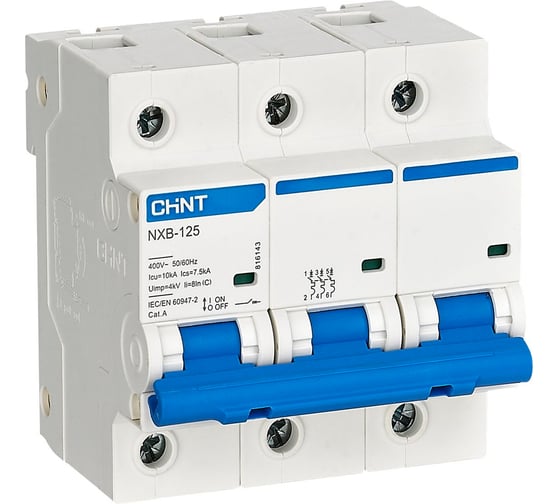 Автоматический выключатель CHINT NXB-125 3P 100А 10кА х-ка D (R) 816142