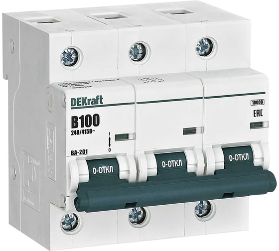 Автоматический выключатель Dekraft ВА-201 3P 100А B 10кА 13043DEK