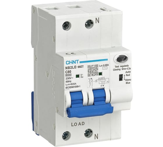 Автоматический выключатель дифференциального тока (АВДТ) CHINT NB2LE-80ZT 1P+N C32 30мА тип AC 6кА, электронный (R) 448164