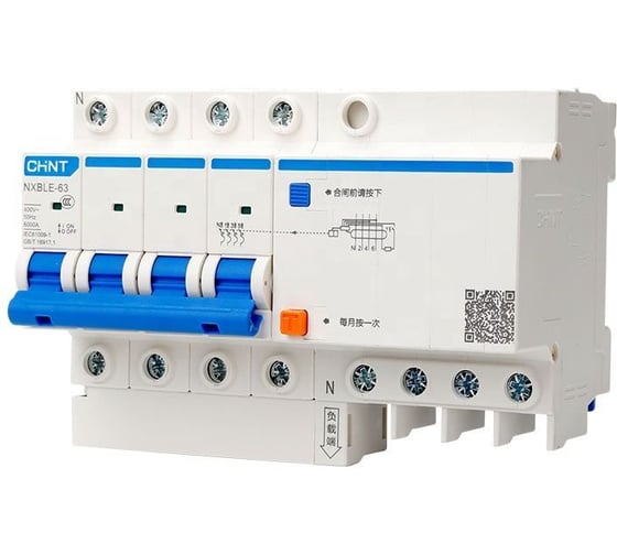 Автоматический выключатель дифференциального тока (АВДТ) CHINT NXBLE-63 4P C40 30мА тип AС 6кА, электронный (R) 982161