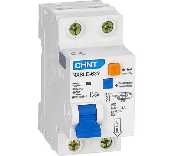 Автоматический выключатель дифференциального тока (АВДТ) CHINT NXBLE-63Y 1P+N C50 30мА тип AС 4,5кА, электронный (R) 105547