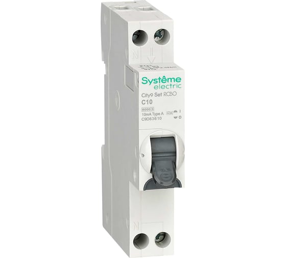 Автоматический выключатель дифференциального тока (АВДТ) Systeme Electric City9 1П+Н C10 6000A 10мА A 18мм C9D83610