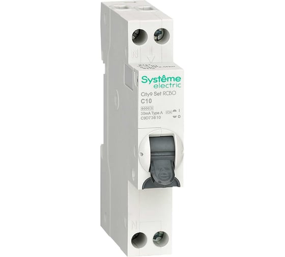 Автоматический выключатель дифференциального тока (АВДТ) Systeme Electric City9 1П+Н C10 6000A 30мА A 18мм C9D73610