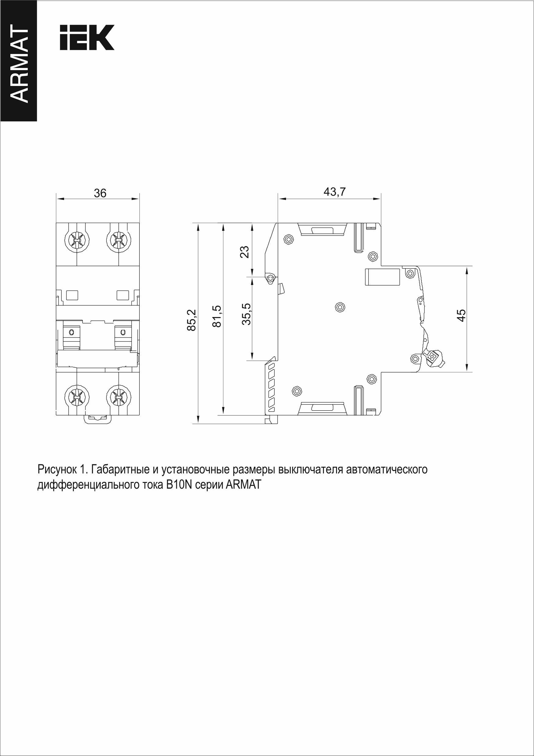 Автоматический выключатель дифференциального тока IEK ARMAT АВДТ B10N 2P B20 30мА тип AC AR-B10N-2-B020C030