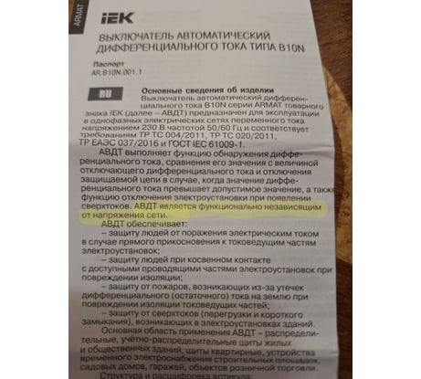 Вопросы и ответы об автоматическом выключателе IEK ARMAT АВДТ B10N 2P C32 30мА тип A AR-B10N-2-C032A030