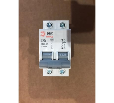 Отзывы об автоматическом выключателе ЭРА SIMPLE ВА 47-29 2P 25А C 4,5кА Б0039231