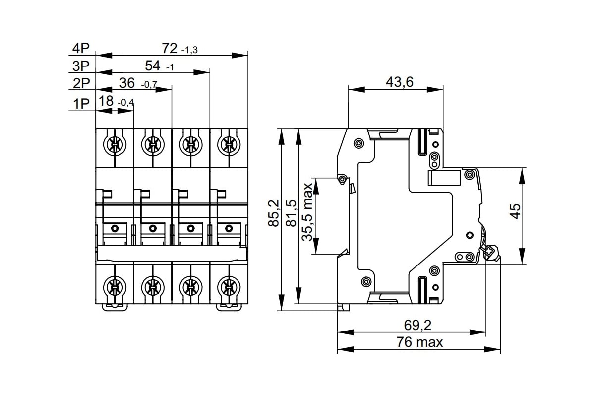 - Тип монтажной рейки - ТН-35.