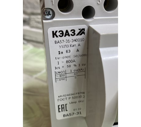 Отзывы об автоматическом выключателе КЭАЗ ВА57-31-340010-100А-1200-690AC-УХЛ3- 108427