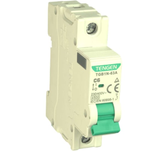 Автоматический выключатель миниатюрный TENGEN TGB1N-63A-1PC6 Модульный выключатель 1P 6A C 4,5kA 1х модуль УТ-00026928