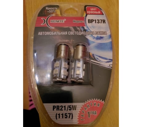 Автомобильная лампа XENITE BP-137R 12 В, красный, PR21/5W/1157, 2 шт. 1009233 предназначена для установки в габаритное освещение, стоп-сигнал.