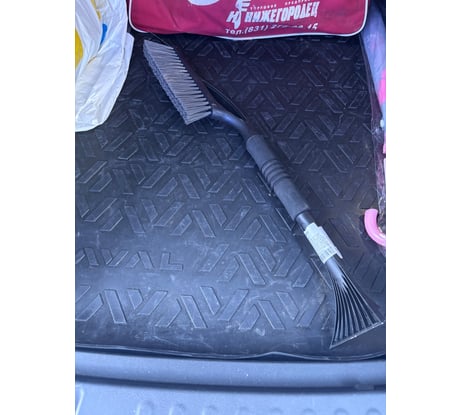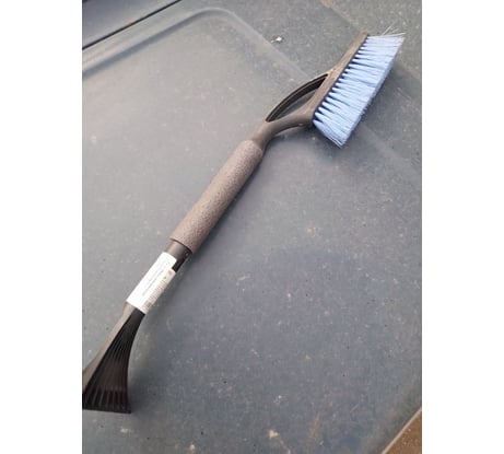 Легко сметает снег, скребок справляется с небольшой наледью.