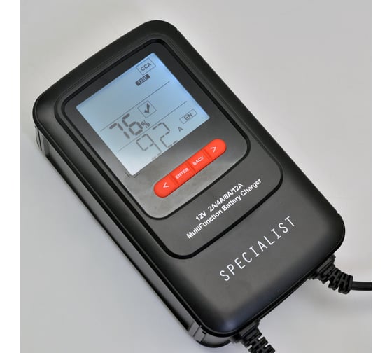 Теперь пользователь может запустить все процессы диагностики как перед началом зарядки, так и по ее окончании и получить полную картину о состоянии своей АКБ — устройство снабжено многофункциональным ЖК-дисплеем, по которому можно оценить состояние батареи, уровень заряда и пусковых характеристик, а также замерить напряжение от генератора.