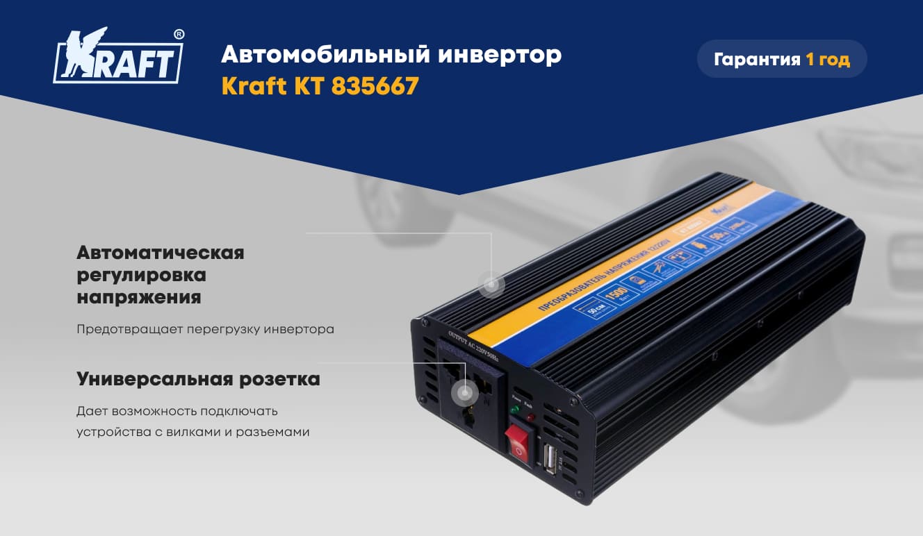 Технические характеристики автомобильного инвертора KRAFT KT 835667
