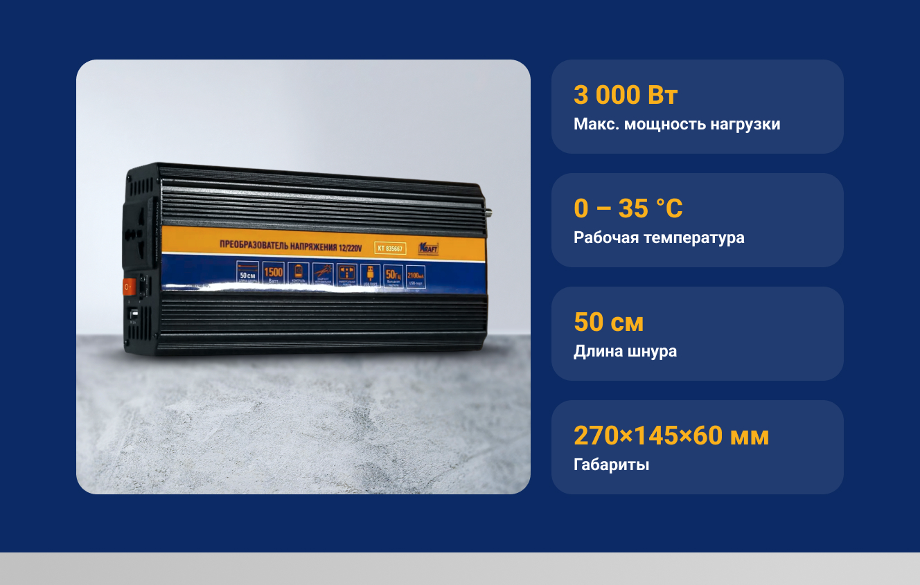Преимущества автомобильного инвертора KRAFT KT 835667