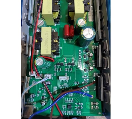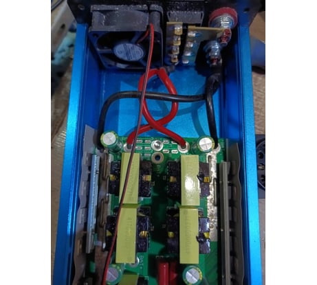 Большой , тяжёлый , толстые кабеля в комплекте , 2 кулера охлаждения, хотя он и не греется особо